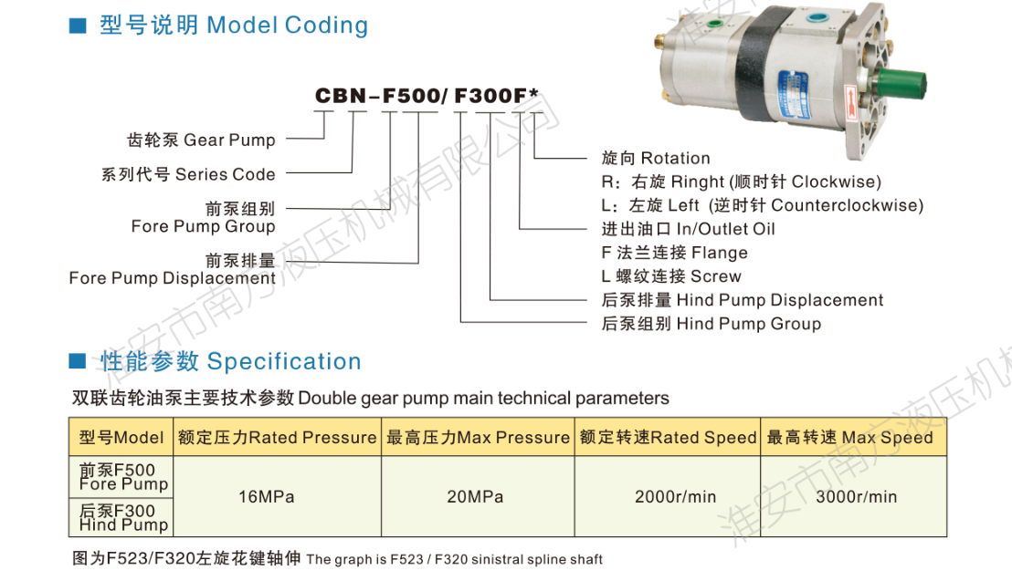 CB N-F500/300系列雙聯(lián)齒輪泵
